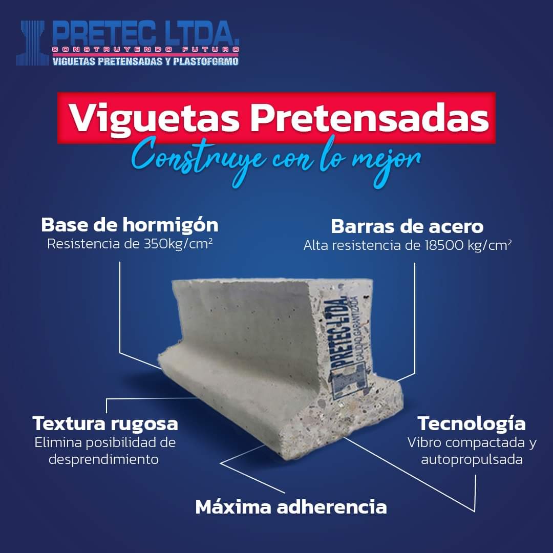 Viguetas pretensadas que aparte de tener una forma ideal para la adherencia, tiene rugosidad que permite obtener una estructura monolítica que reduce la vibración y elimina la posibilidad de desprendimiento entre las viguetas y la carpeta de compresión.